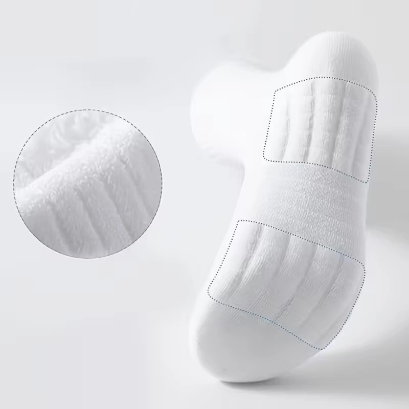 Tykk frottésåle absorberer støt og beskytter sålene mot slag. Hvert steg føles mykt, så tretthet ikke bremser deg.