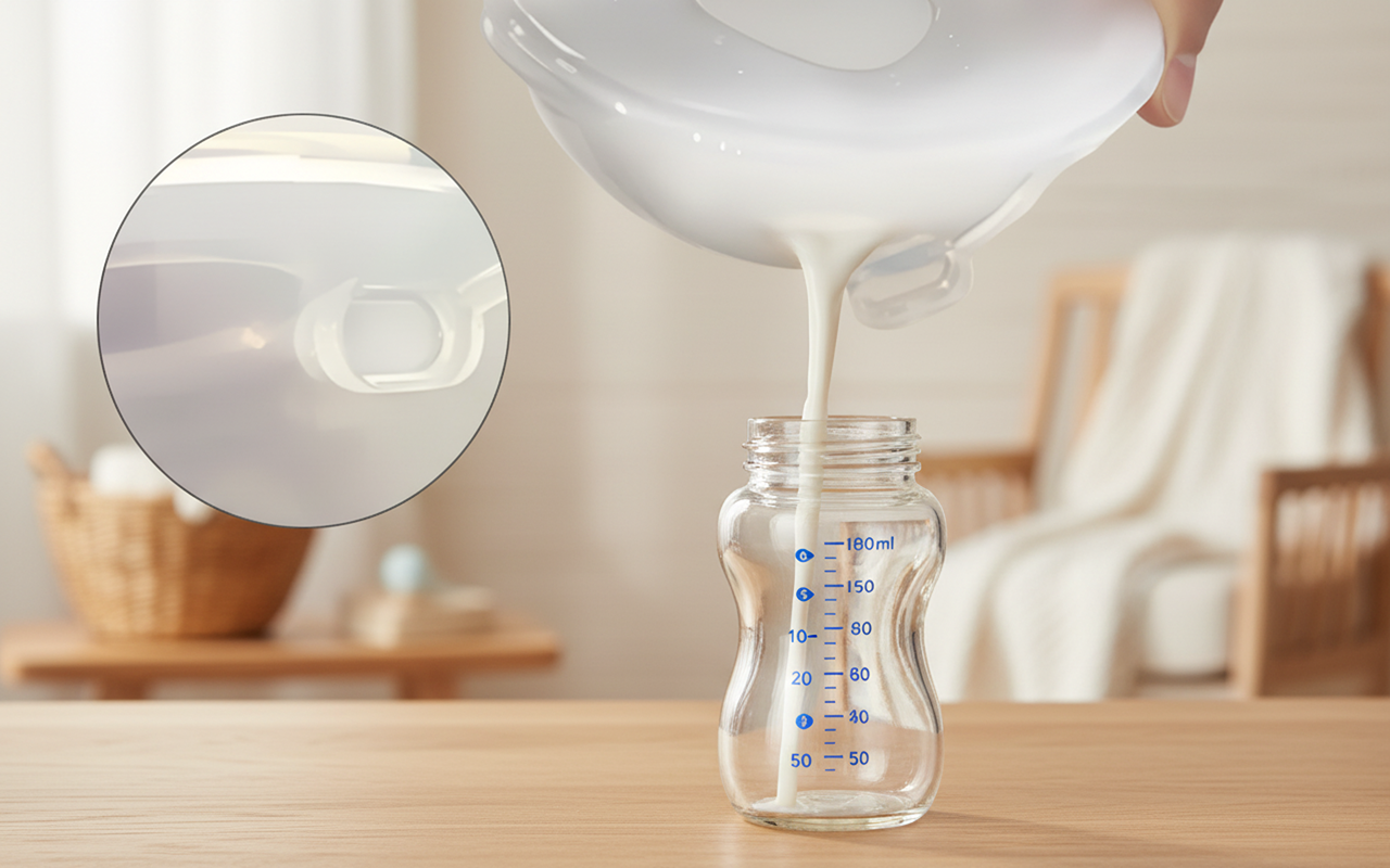 Bare legg dem i BHen for å begynne å samle opp melk lydløst. Det er raskt og enkelt å helle melk over i flasker.