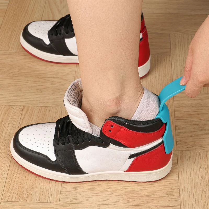 Jeg bruker denne skohornet hver dag før jobb. Jeg bare hekter det bak hælen, står rett opp, og skoene glir på uten trekking eller vridning.