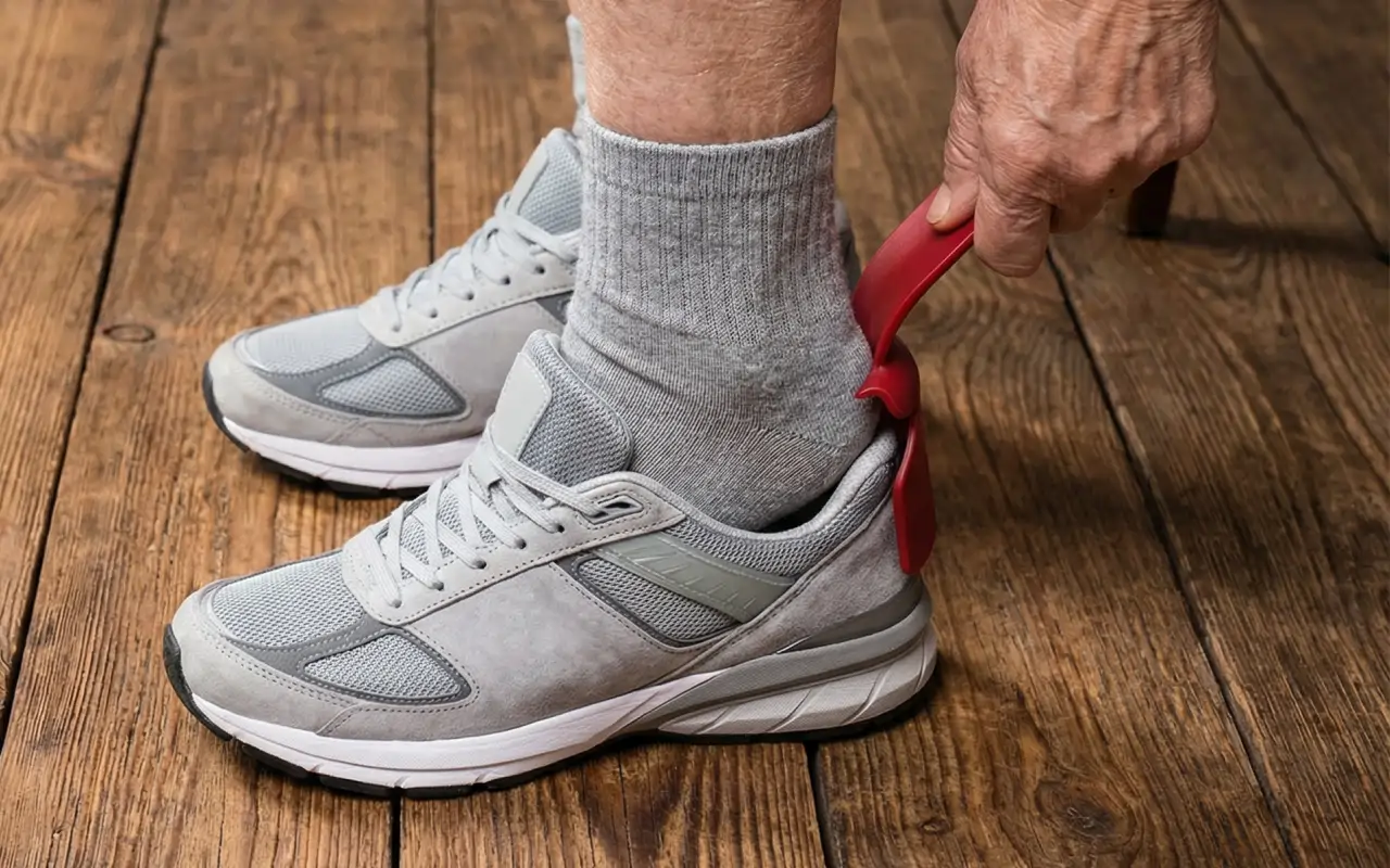 Kjøpte denne skohjelperen til faren min med leddgikt. Nå sklir han rett inn i joggeskoene uten å bøye seg, og han sier hele tiden hvor mye enklere morgenene har blitt.