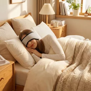 Denne øyemasken lar luft passere lett, og holder huden tørr og komfortabel.