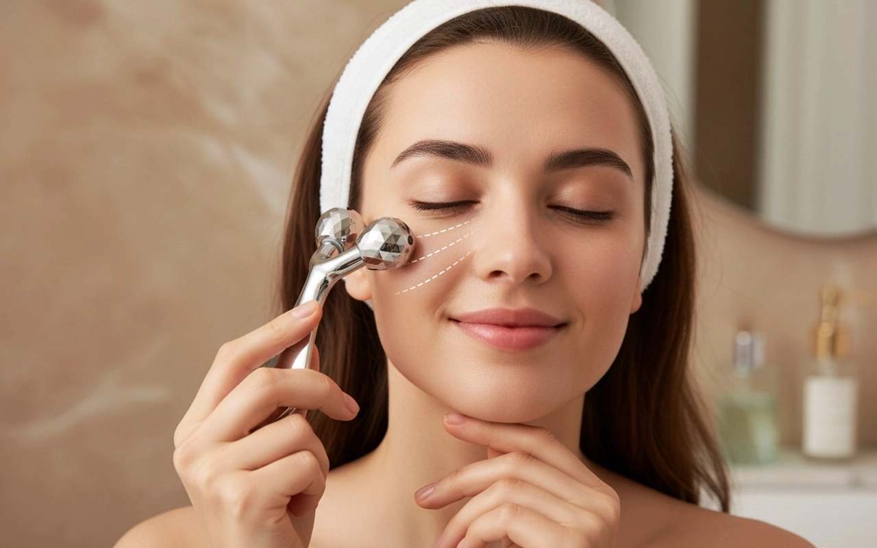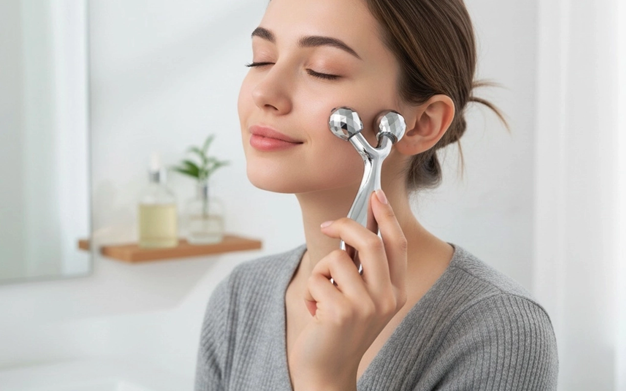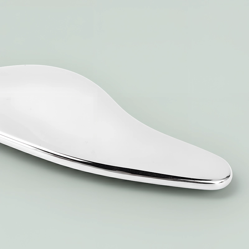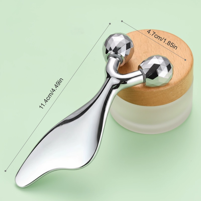 Myke bevegelser beroliger slitne ansikt og lindrer muskelspenninger. Glatt rustfritt stål føles kjølig og hjelper til med å få hevelser til å forsvinne. Løft konturene og gi huden et fastere, yngre utseende.