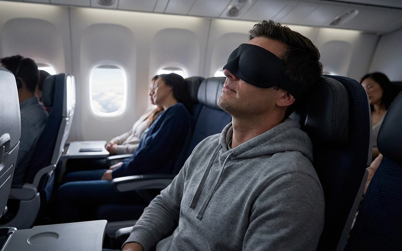 Jeg reiser mye i jobben. Denne lille masken ligger fast i vesken min og gjør lyse hotellrom om til en rolig hule så jeg kan sovne raskt.