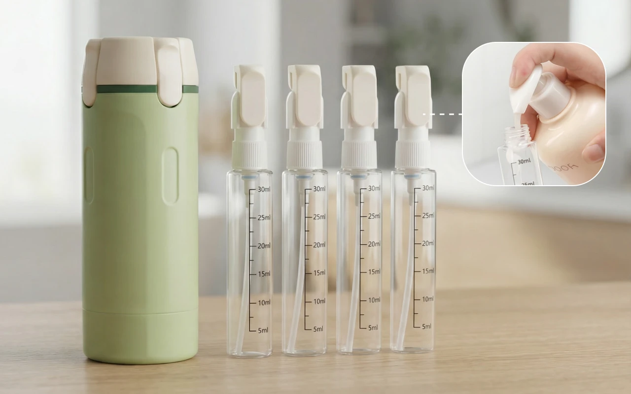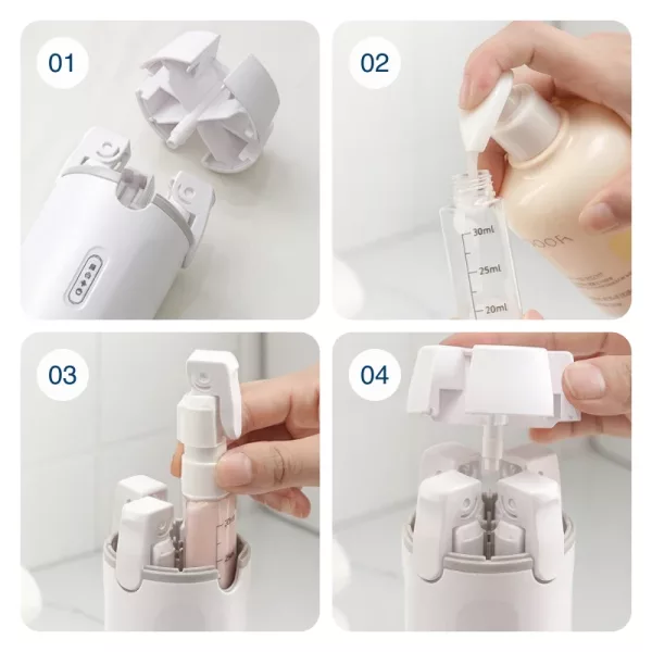 Ikke mer leting etter småflasker i kofferten. Denne holder alt samlet på ett sted. Påfyllingen er også veldig enkel.