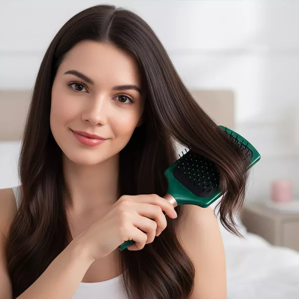 Runde børstehår masserer hodebunnen forsiktig og øker blodsirkulasjonen ved hver børsting. Sunne røtter gir fyldigere hårvekst og naturlig glans.