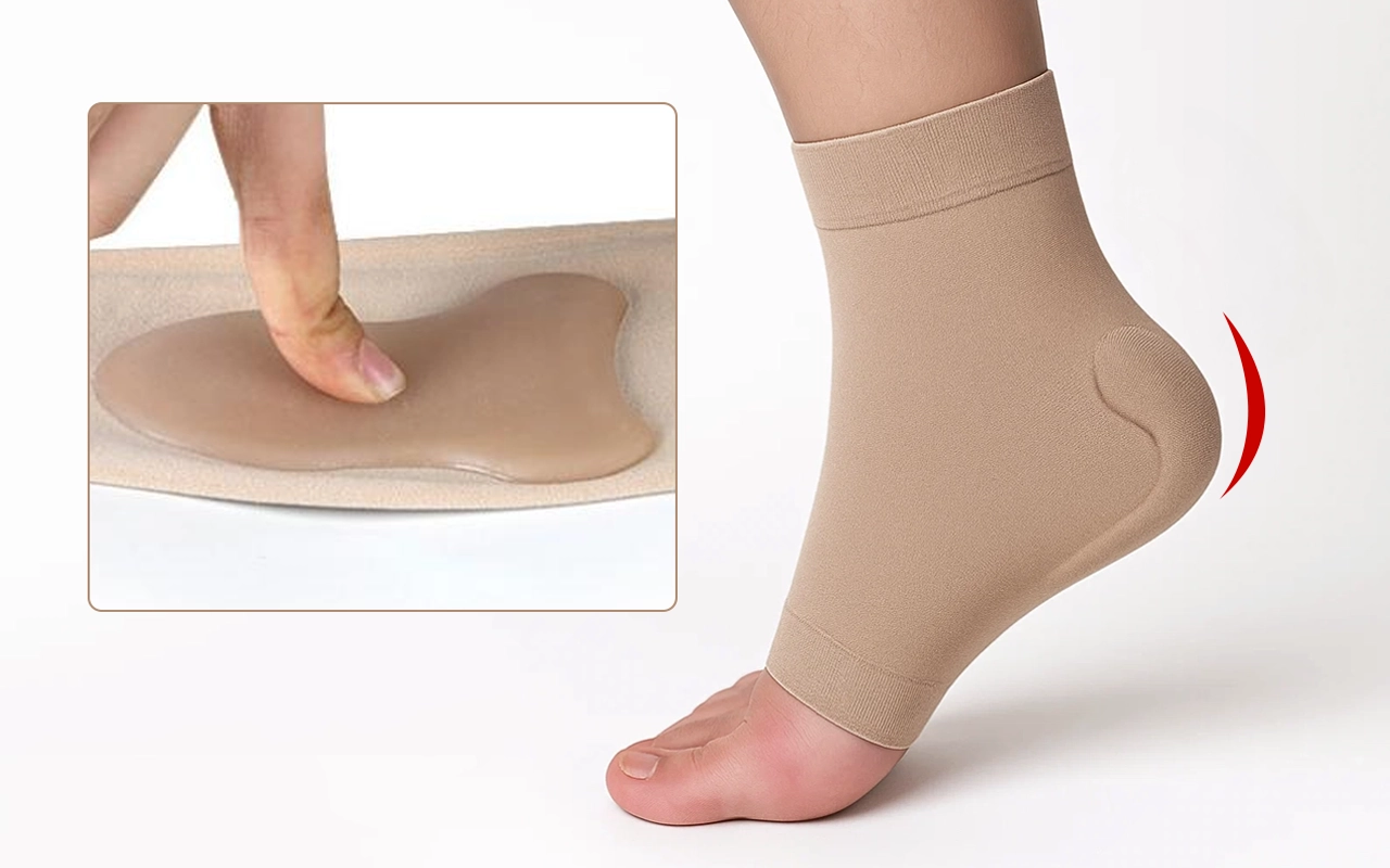 Lett kompresjon støtter ankelen din og hjelper til med å forhindre at du sklir. Det elastiske materialet sikrer en perfekt passform for alle fotstørrelser.