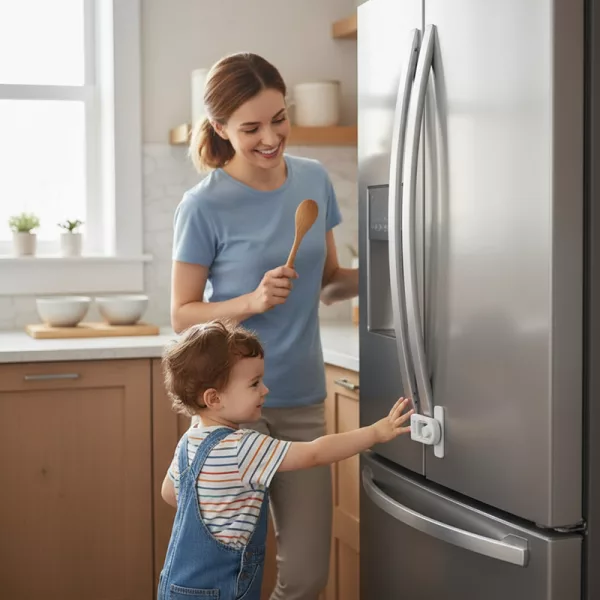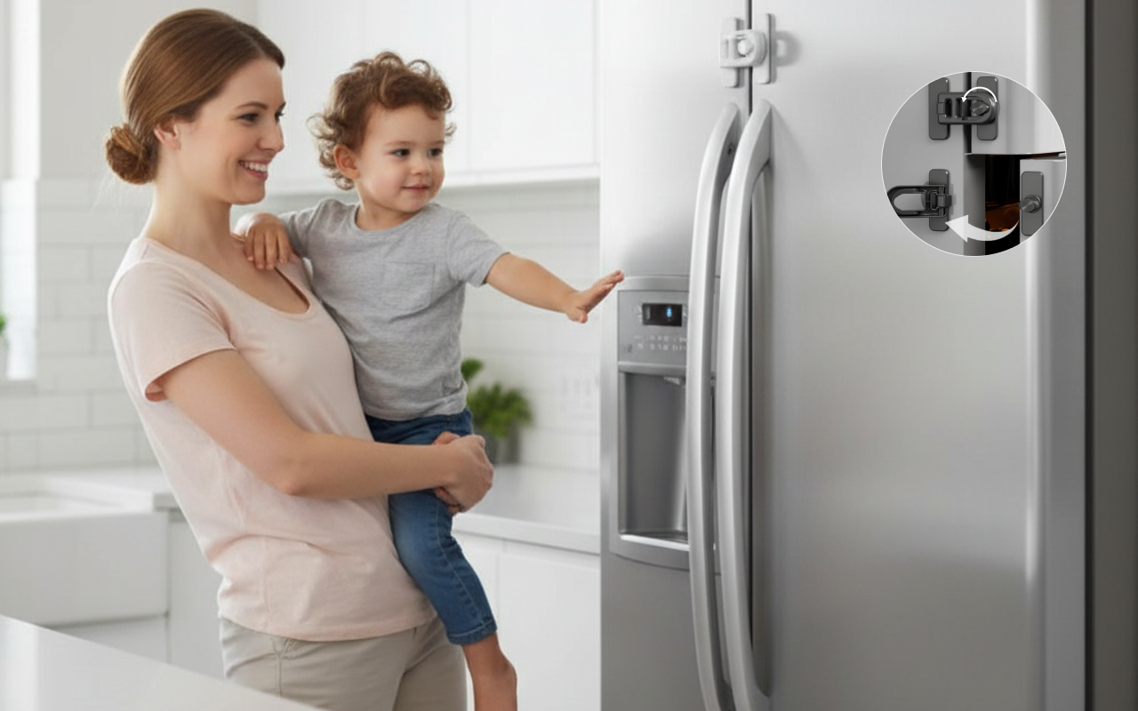 Installerte denne kjøleskapslåsen etter at smårollingen min tømte yoghurt overalt. Sitter godt fast, er enkel for oss å åpne, og holder nysgjerrige hender unna hver eneste dag.