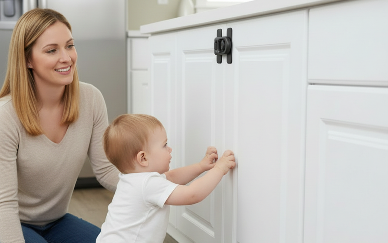 Voksne låser opp på sekunder med en enkel vribevegelse. Små barn klarer ikke å åpne den, så alt forblir sikkert.