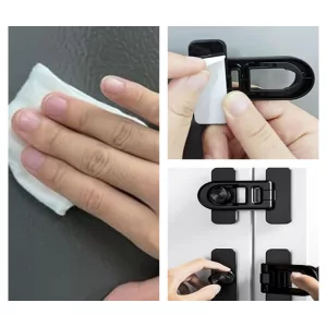 Kjøpte denne lille låsen til når barnebarnet mitt er på besøk. Den settes på raskt, uten boring, og han klarer ikke å rikke døren i det hele tatt, uansett hvor hardt han drar.