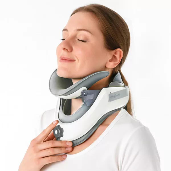 Å bruke denne trekkraftkragen har hjulpet på nakkespennet mitt så mye! Det lette designet gjør hverdagen enklere og holder holdningen min balansert.