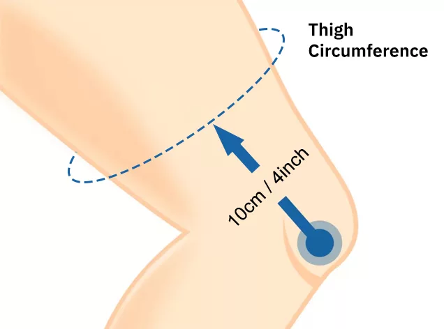 - 1. Bøy benet i en 30° vinkel og mål låromkretsen din 10 cm (4'') over kneskålen.