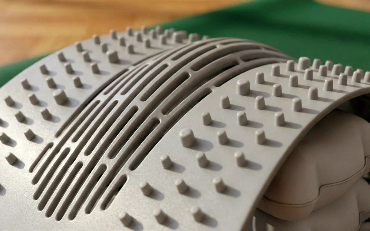 Den buede utformingen støtter forsiktig en naturlig kroppsholdning under bruk. Dette fremmer riktig posisjonering som kan redusere trykket på mellomvirvelskivene og forbedre den generelle bevegeligheten.