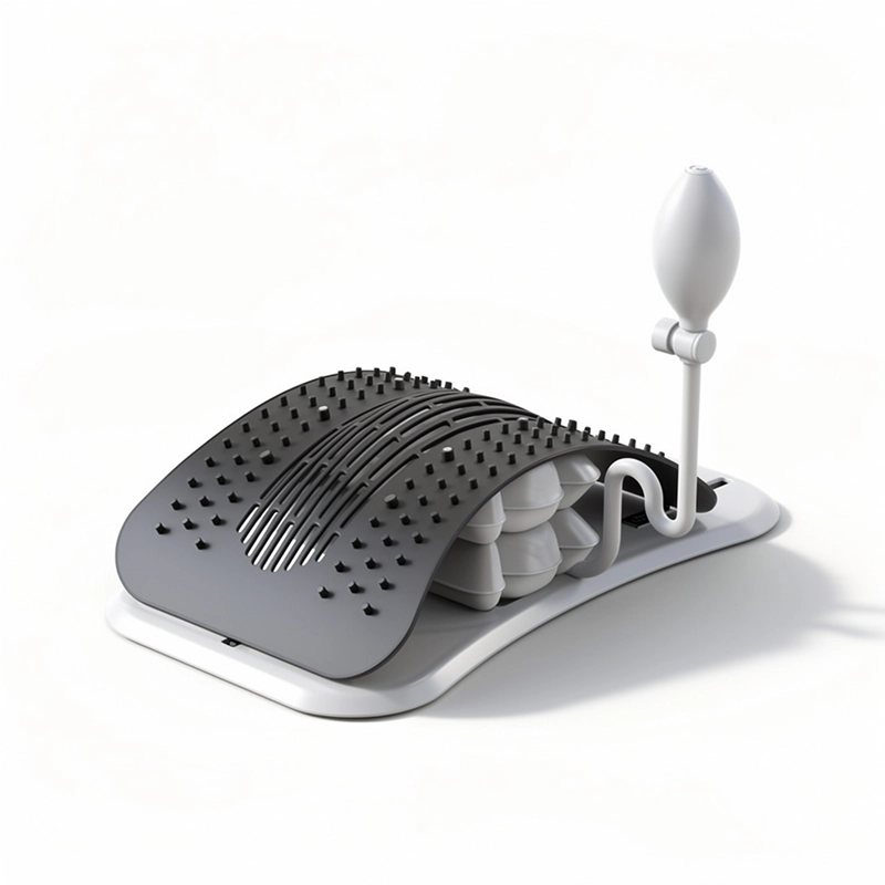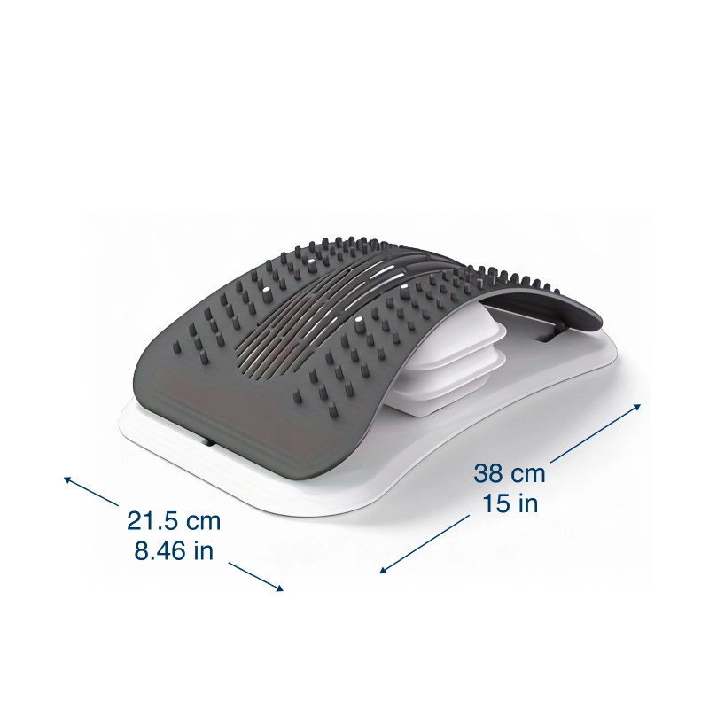Den buede utformingen støtter forsiktig en naturlig kroppsholdning under bruk. Dette fremmer riktig posisjonering som kan redusere trykket på mellomvirvelskivene og forbedre den generelle bevegeligheten.