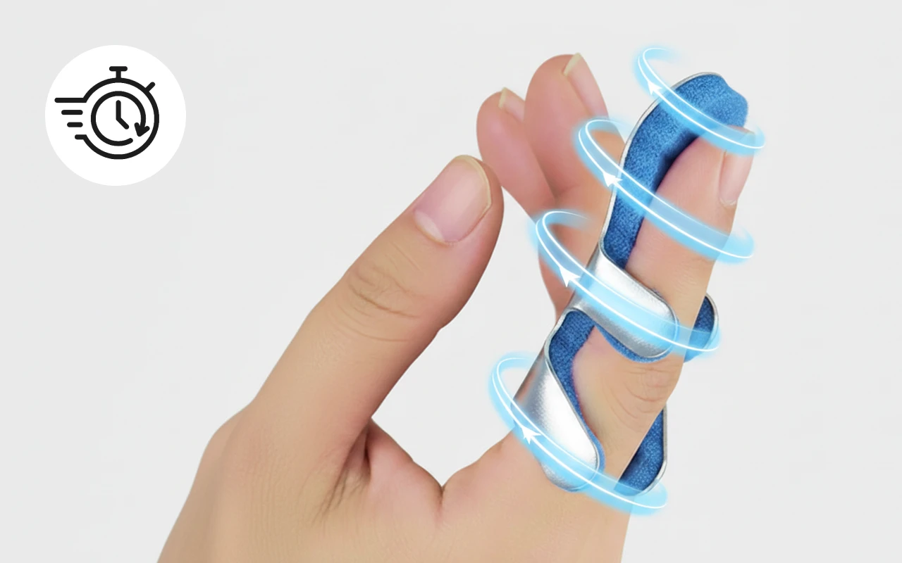 Aluminiumsplaten holder skadede ledd stabile for raskere tilheling. Ingen glidning eller forskyvning gjør at fingeren din forblir beskyttet.