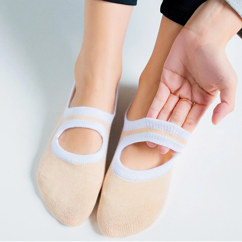 Kjøpte disse til hjemmetrening på tregulv. De små gummigrepene fester så godt at utfall føles tryggere, og bomullen hindrer føttene i å bli overopphetet.