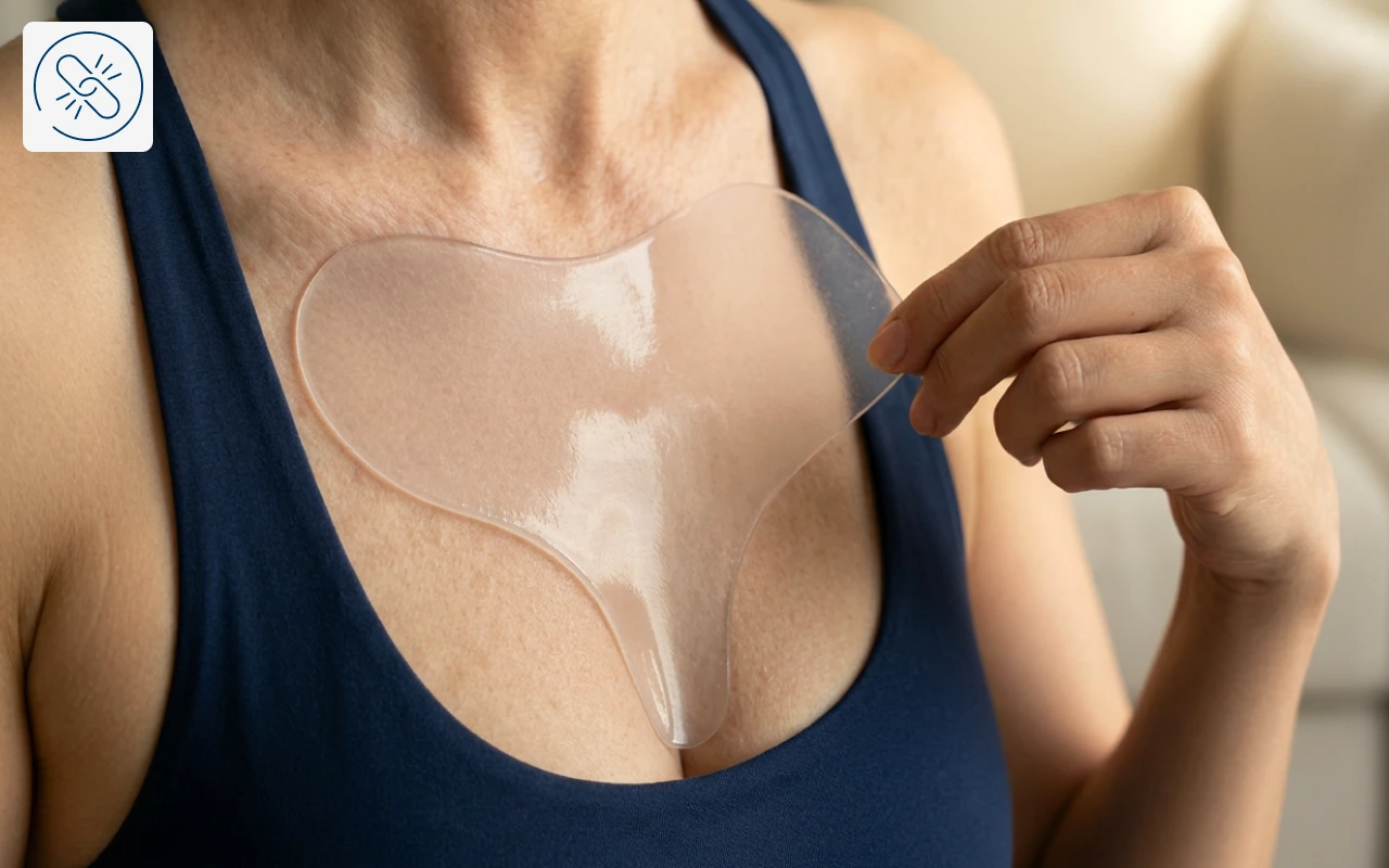 Elsker hvor enkel denne silikonplasten er å bruke. Den sitter på hele natten og gjør linjene på brystet mitt nesten usynlige om morgenen. Jeg føler meg så mye mer selvsikker.