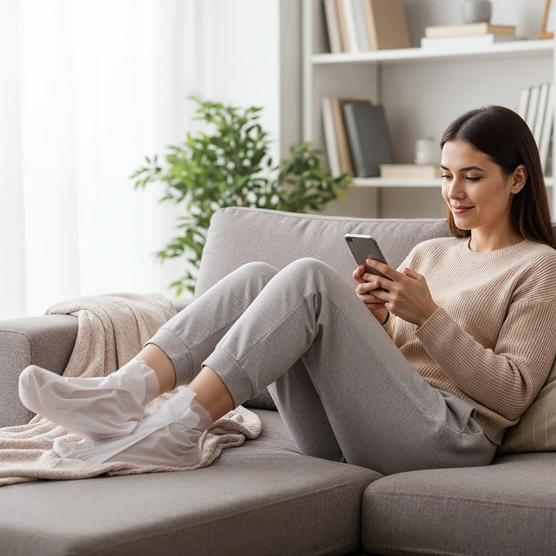 Ta på Ortorex fotmaskesokker og fortsett med daglige gjøremål enkelt. Ingen hard skrubbing eller salongbesøk nødvendig for skånsom fornyelse hjemme.