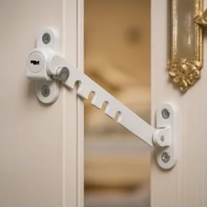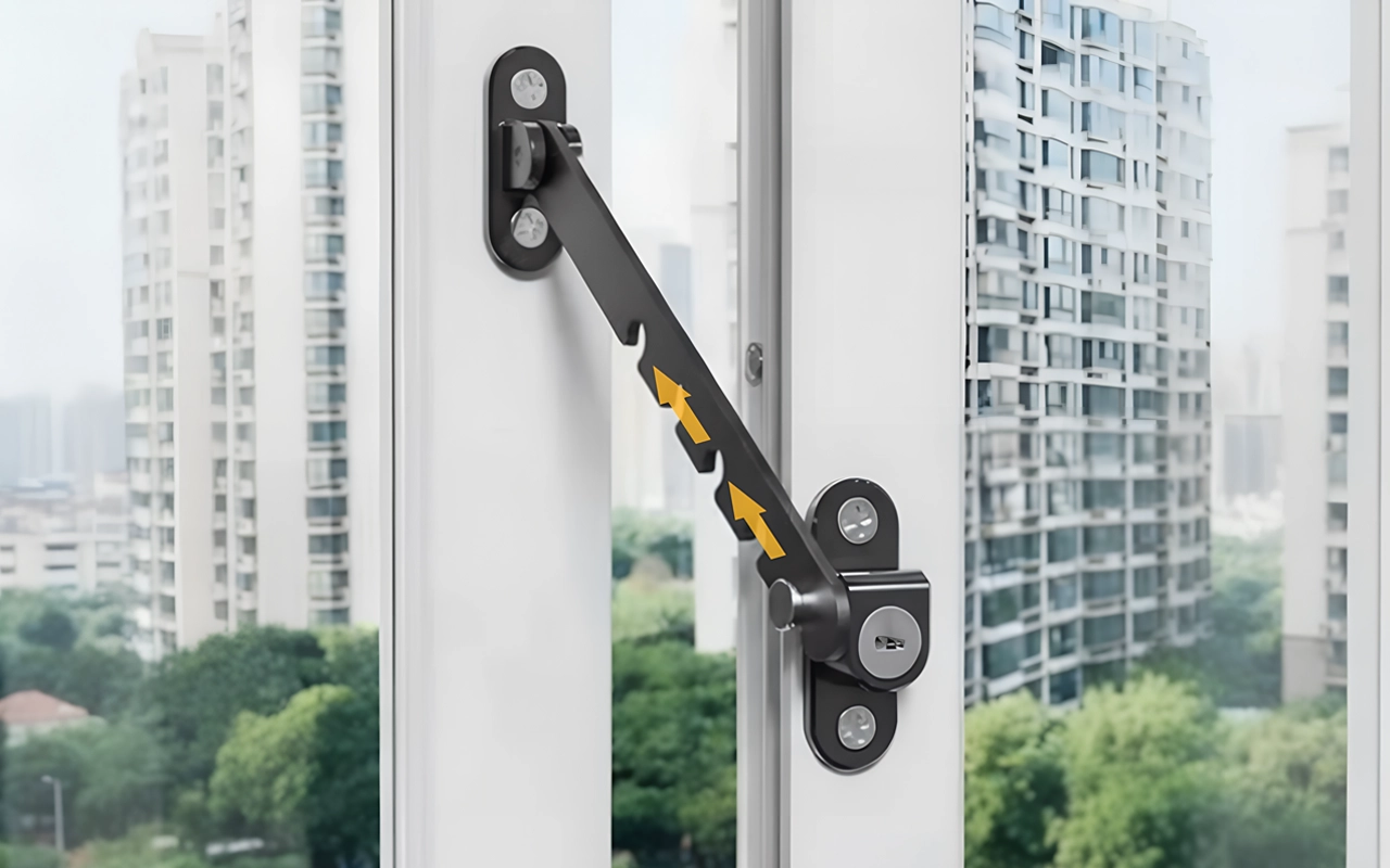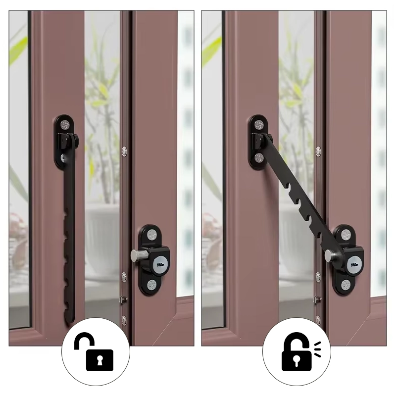 Holder barna våre trygge fra å falle ut av vinduet. Jeg kan fortsatt åpne det litt for luft, noe som er flott om sommeren. Solid og sikker mekanisme.