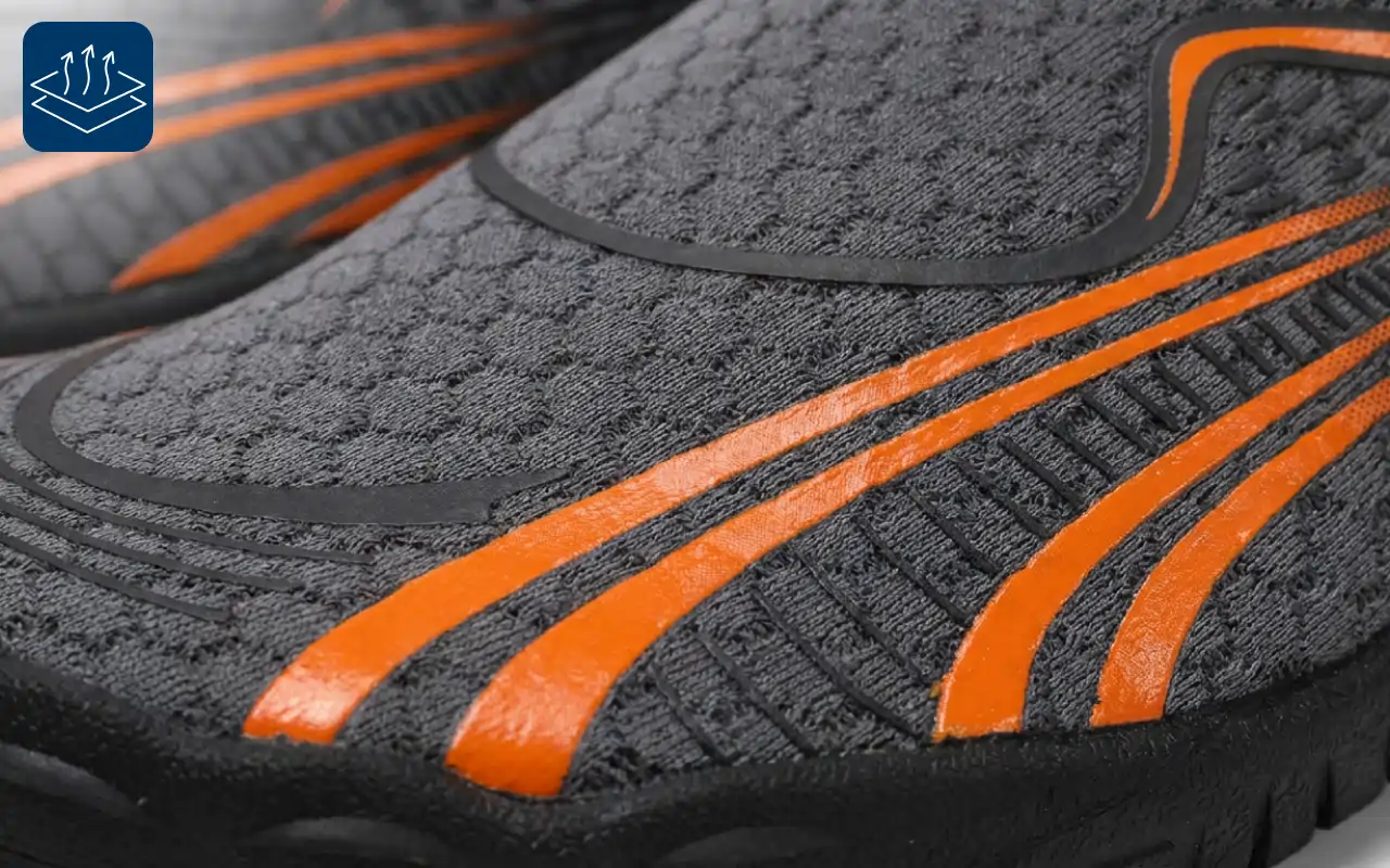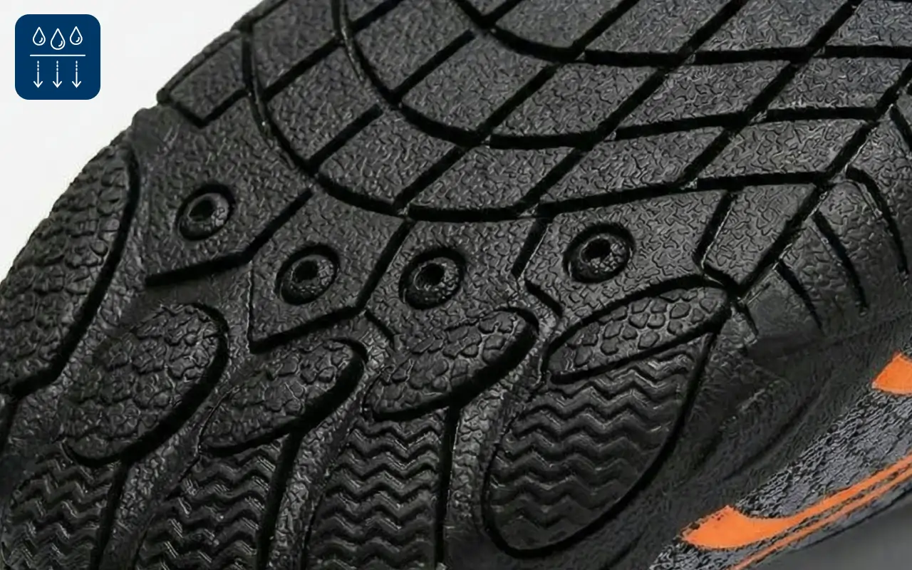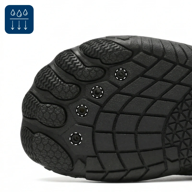 Vannet renner raskt av, så føttene føles aldri gjennomvåte. Dette betyr at du kan fortsette å gå eller svømme uten ubehag.