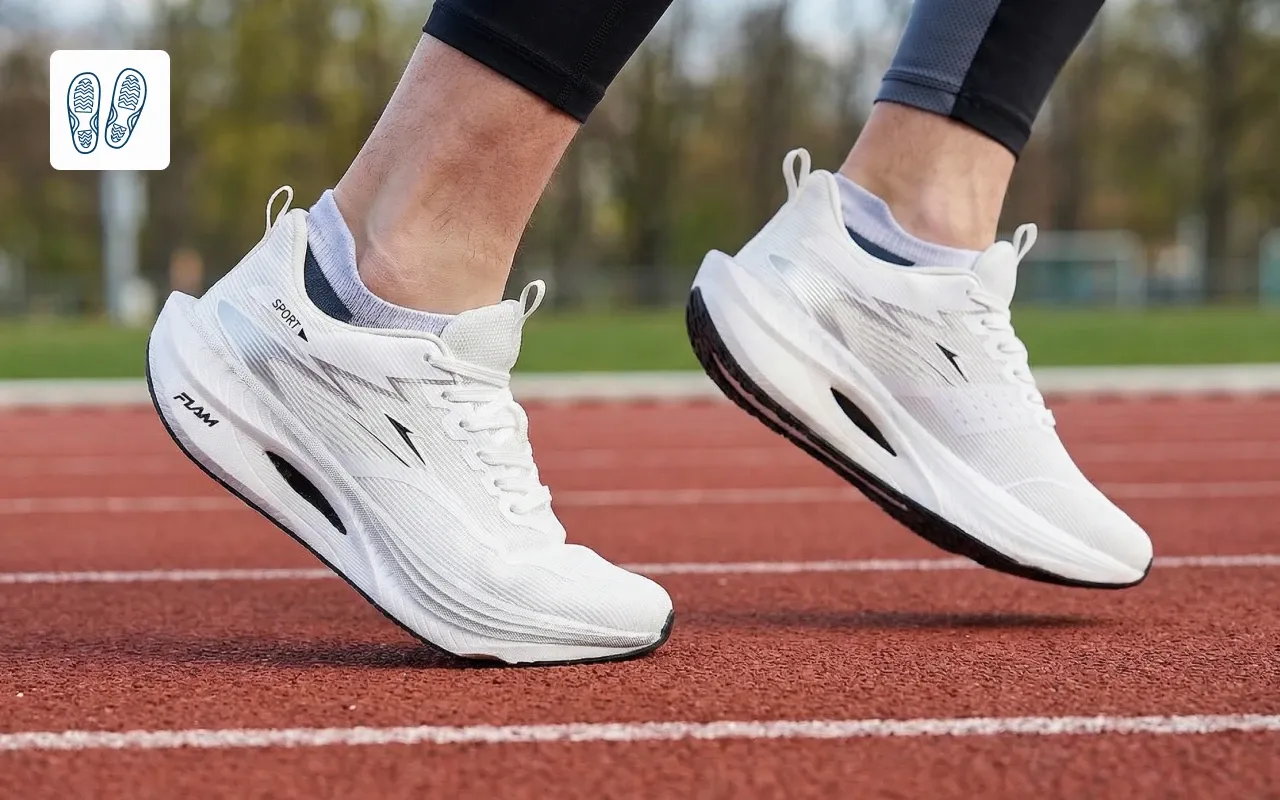 Myk EVA demper støt og reduserer tretthet over tid. Gå eller løp i timevis uten verking.