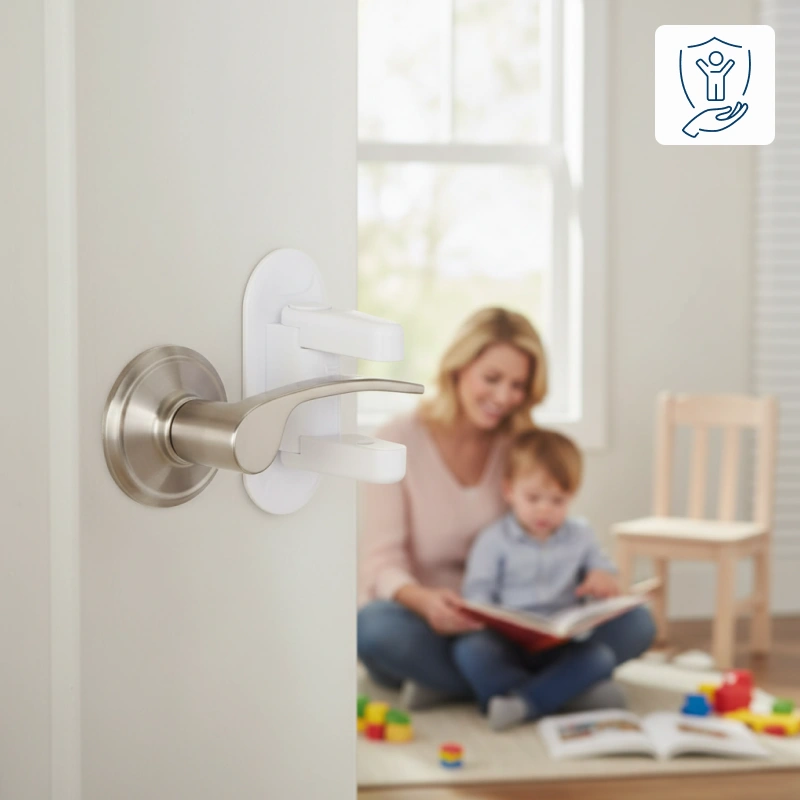 Små uhell kan raskt skje hjemme. Ortorex dørhåndtaklås hindrer barn i å åpne dører uten hjelp. Ingen verktøy trengs for montering hvor som helst i hjemmet.