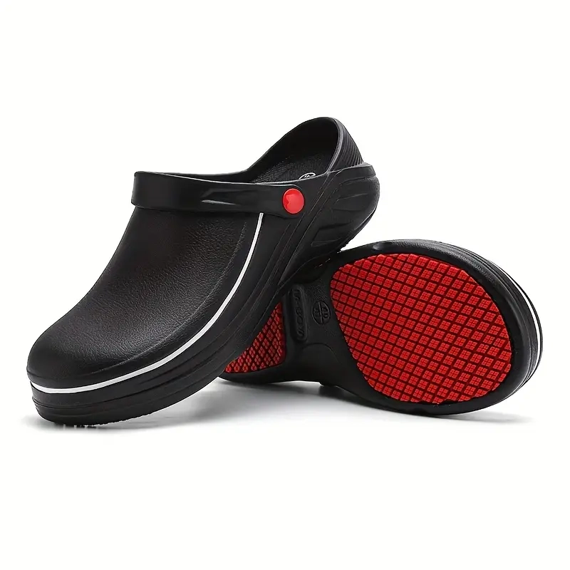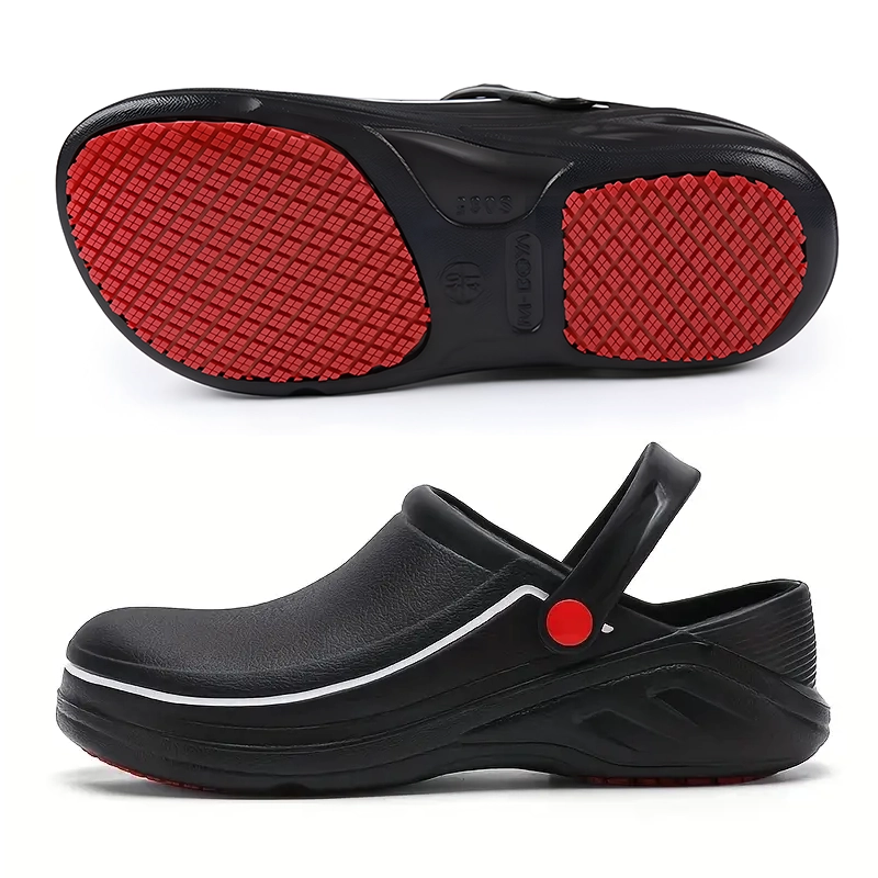 Slip-ons som faktisk griper! Jeg føler meg stabil, og den tykke sålen gir merkbar komfort hele vakten.