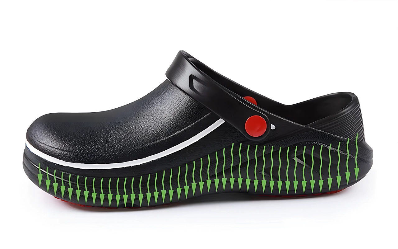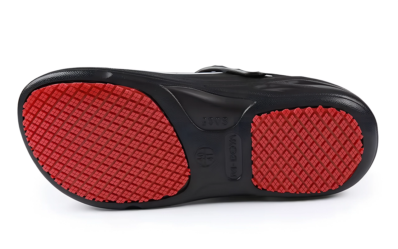 Våte gulv og oljeflekker er ikke lenger et problem. Det unike sålemønsteret gir deg stødig og stabilt fotfeste.