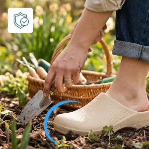 Usikkert underlag fører ikke lenger til glidning eller ubehag utendørs. Ortorex-tresko gjør at føttene føles stabile, tørre og godt dempet overalt. Nyt hvert steg, enten du er i hagen, på våte stier eller på travle kjøkken.