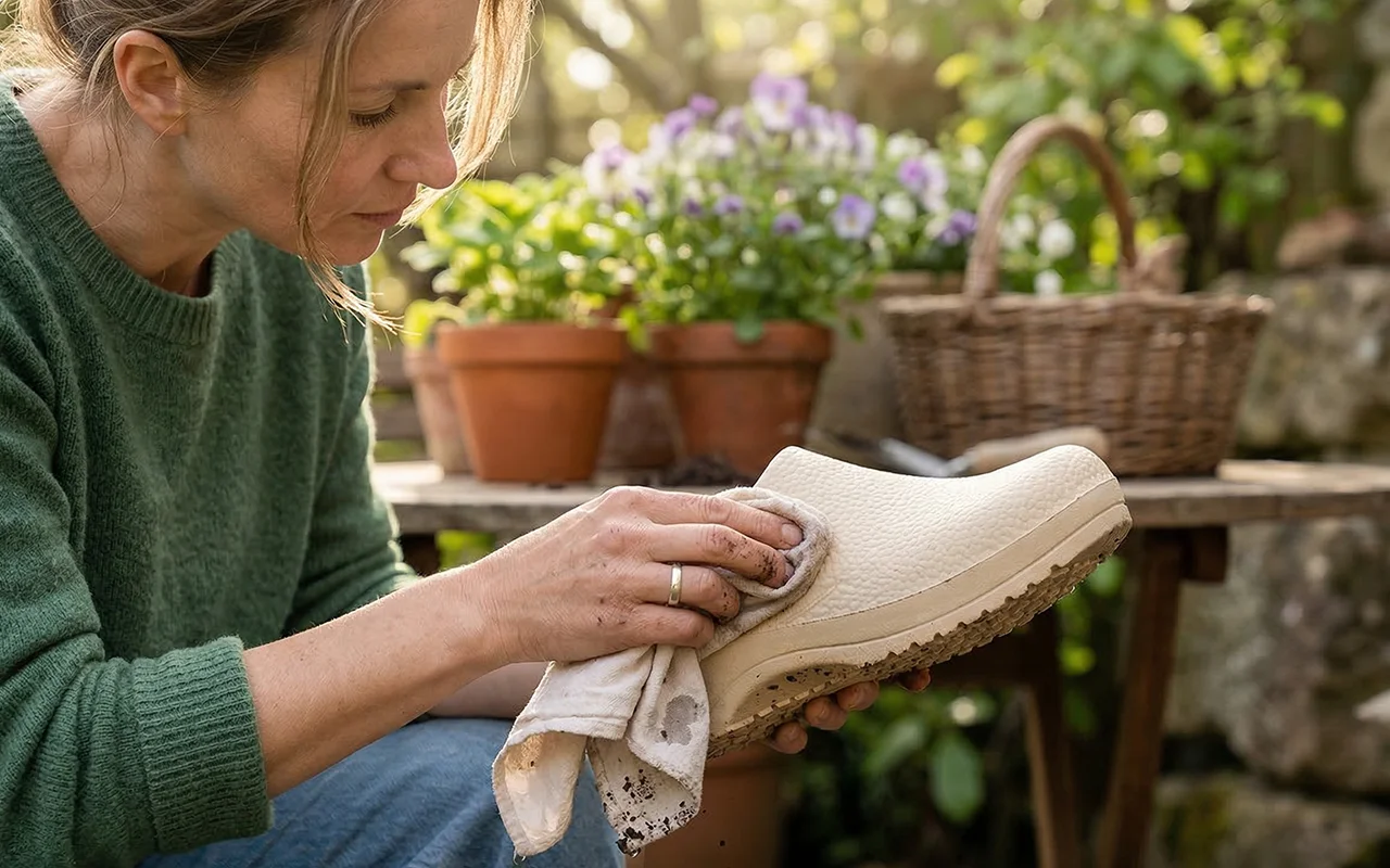 Jeg jobber i hagen i timevis, og vanligvis skriker knærne og fotbuene. Med disse på er støtten solid, tærne er beskyttet, og gjørme skylles av med en gang.
