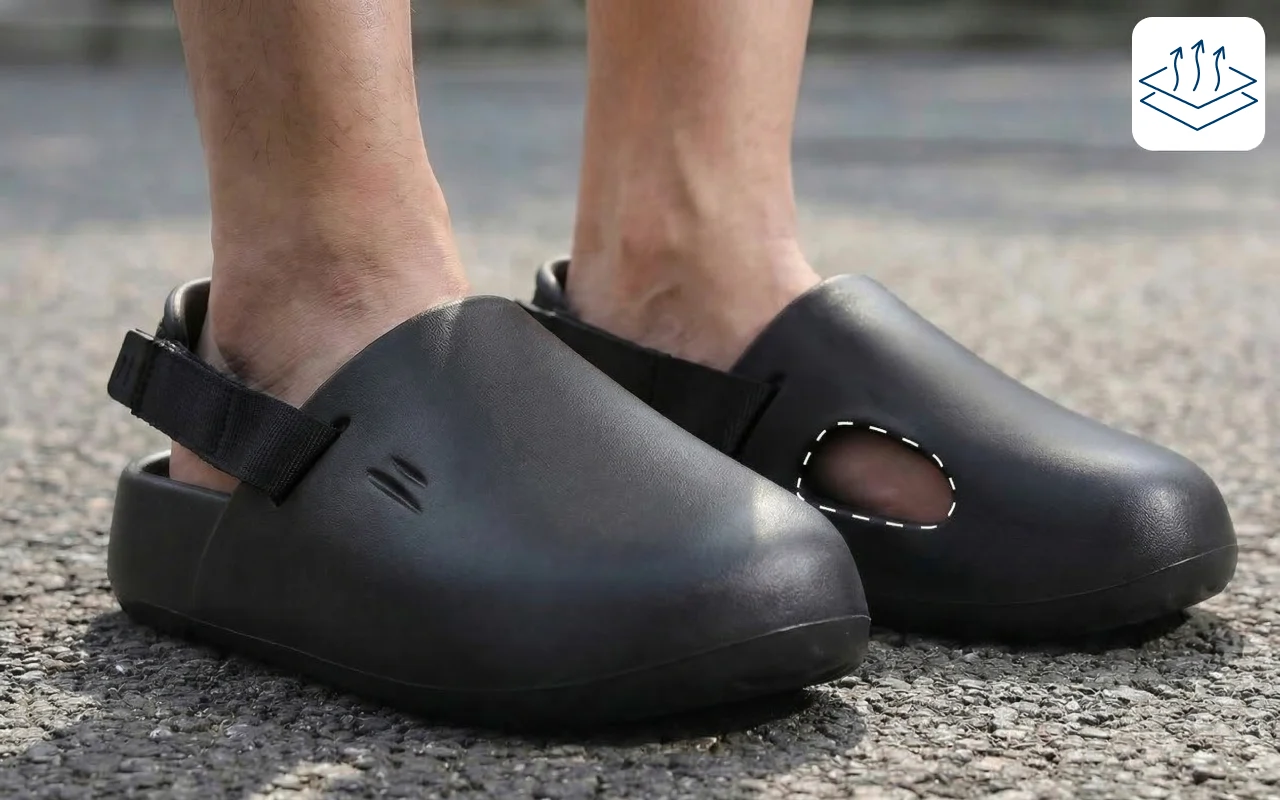 Nyt frisk luft mens føttene føles avslappede og beskyttet. Ortorex-tresko gir varig støtte i timevis uten å gjøre vondt i tærne. Den fleksible hælstroppen holder deg trygg når du går under alle utendørsaktiviteter. Hver steg føles lett og enkelt takket være den stabile utformingen.