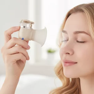 Jeg reiser mye og denne lille steameren passer lett i vesken min. Øynene mine føles fuktige selv på hotellrom med tørr luft. Super hjelpsom etter flyturer.