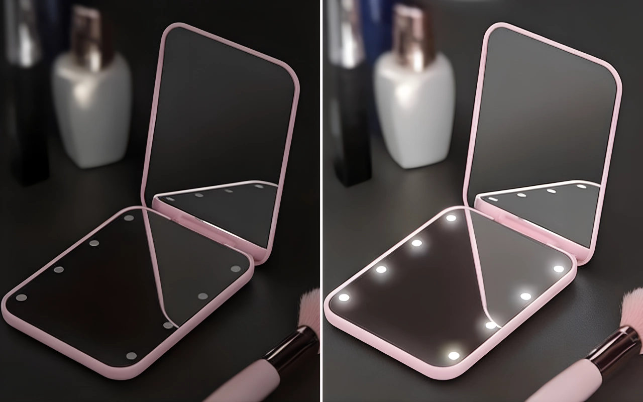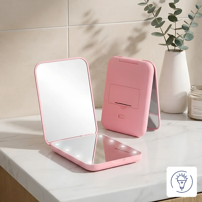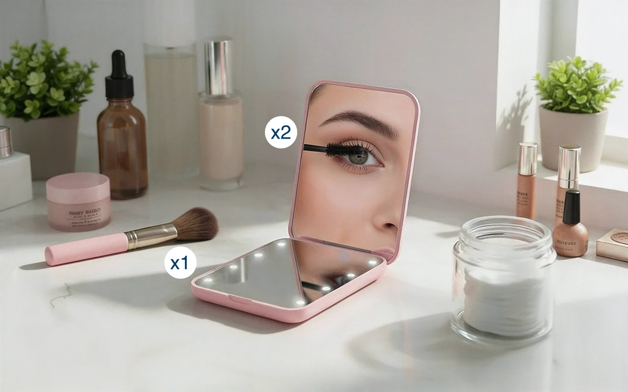 LED-lys lyser sterkt og gjør det enklere å påføre sminke. Synligheten forbedres selv i svakt belyste rom for topp presisjon.