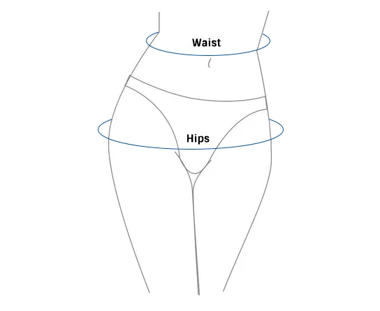 - 2. Plasser målebåndet rundt den smaleste delen av midjen og den fyldigste delen av hoftene.