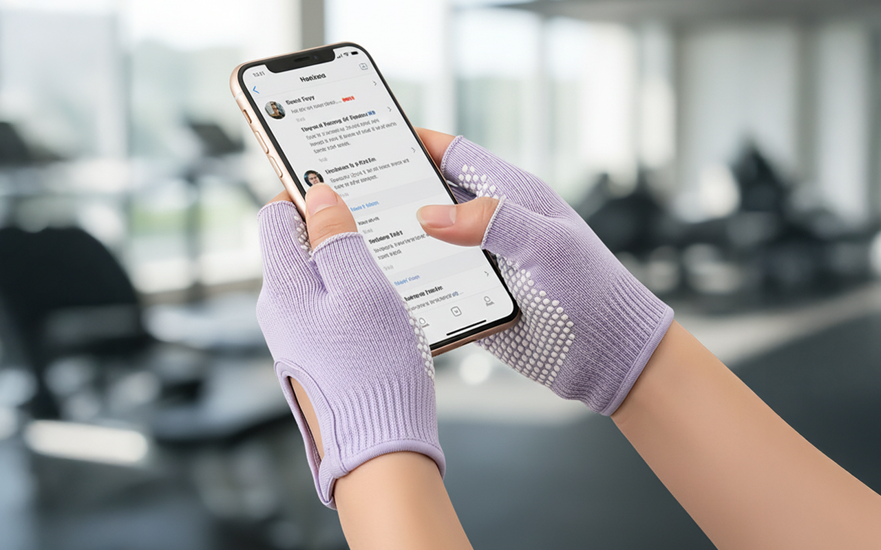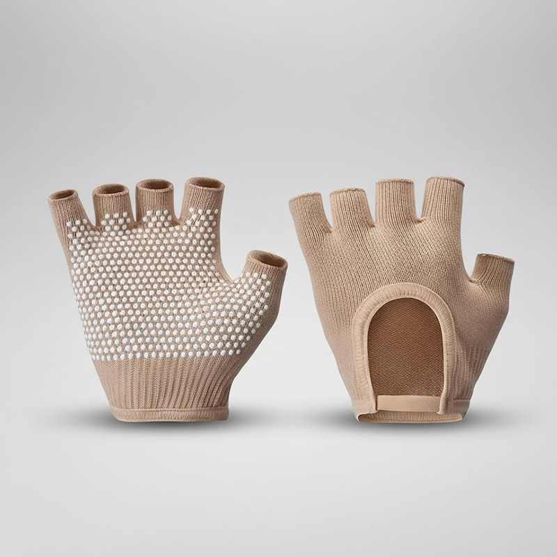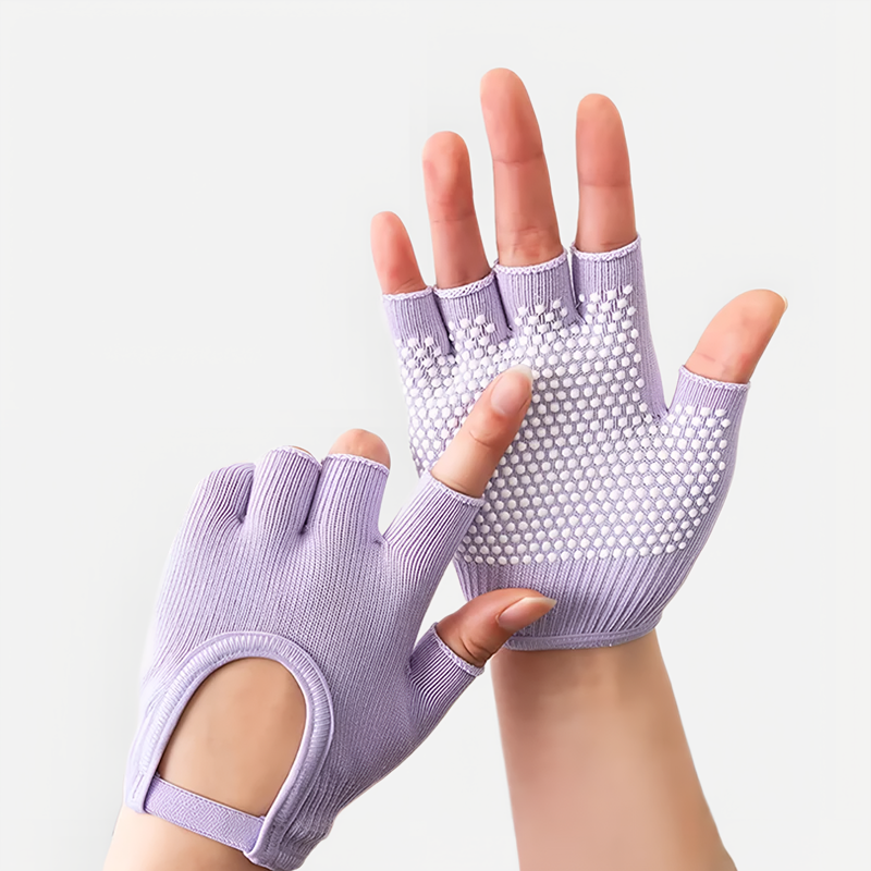 Silikonprikker i håndflaten gir skikkelig godt grep på hver bevegelse. Du holder deg stødig under yoga, pilates eller sykling uten å skli.