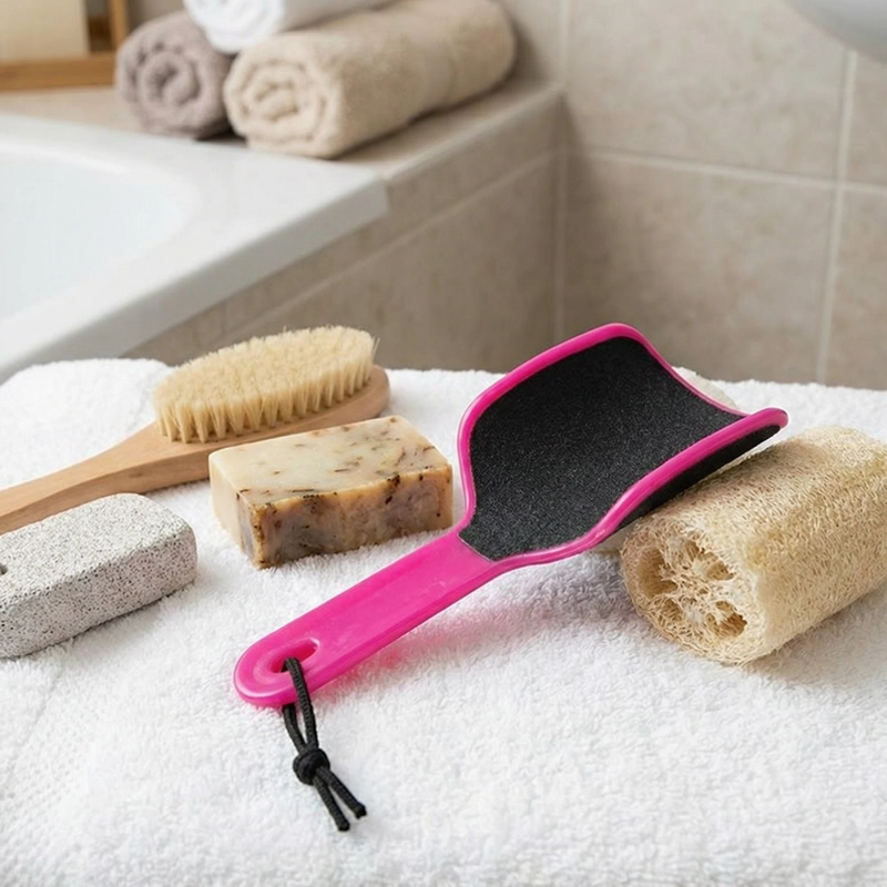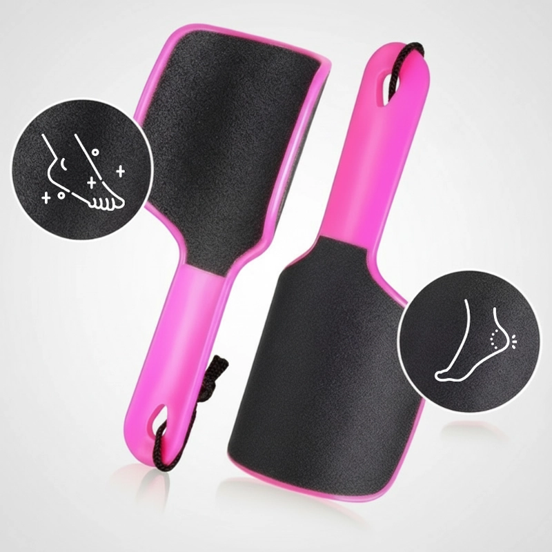 Vår fotskrubb gir skreddersydd og effektiv fotpleie. Den ene siden fjerner raskt hard hud, mens den andre polerer for en jevn finish.