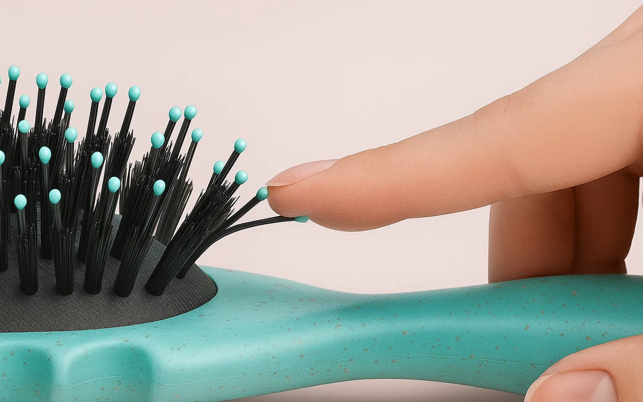 Børstehårene er skånsomme og gjør ikke vondt mot hodebunnen. Jeg liker hvor lett den er å rengjøre og at håndtaket ligger godt i hånden.