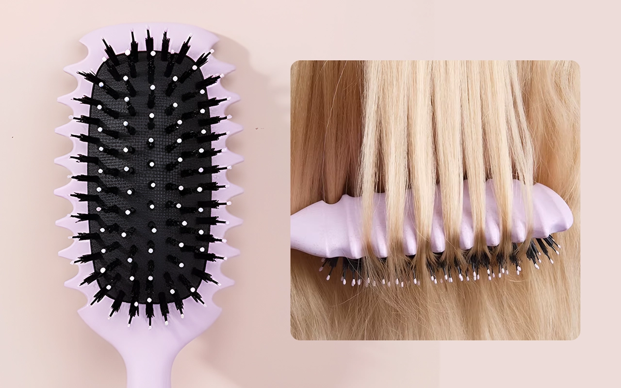 Ikke mer lugging eller rykk for hvert drag. Fleksible nylonbørstehår beveger seg skånsomt og gjør det raskt og enkelt å løse opp floker.