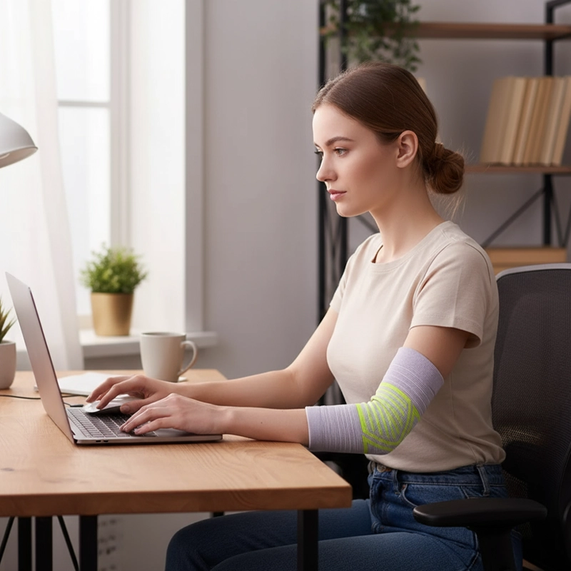 Jeg bruker denne albueskinnen hver dag når jeg taster på jobb. Glemmer noen ganger at jeg har den på fordi den er lett og ikke etterlater merker. Albuen min føles mye bedre nå.
