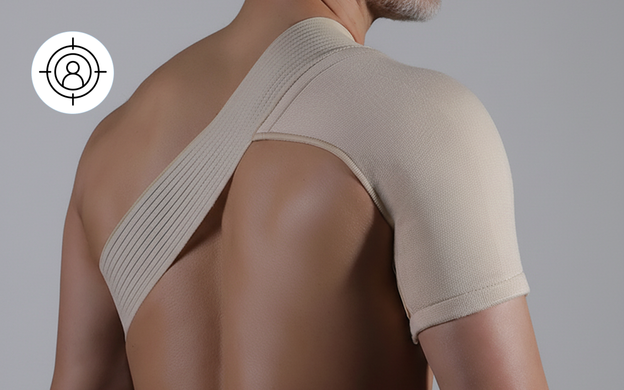 Den konturformede utformingen følger skulderen for et sikkert feste. Den holder seg på plass under aktivitet og sklir eller krøller seg aldri.