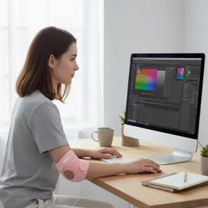 Jeg bruker denne støtten både på jobb og når jeg sykler. Kjempelett, og armen min føles ikke varm selv etter flere timer. Helt klart til hjelp for å holde meg i bevegelse.