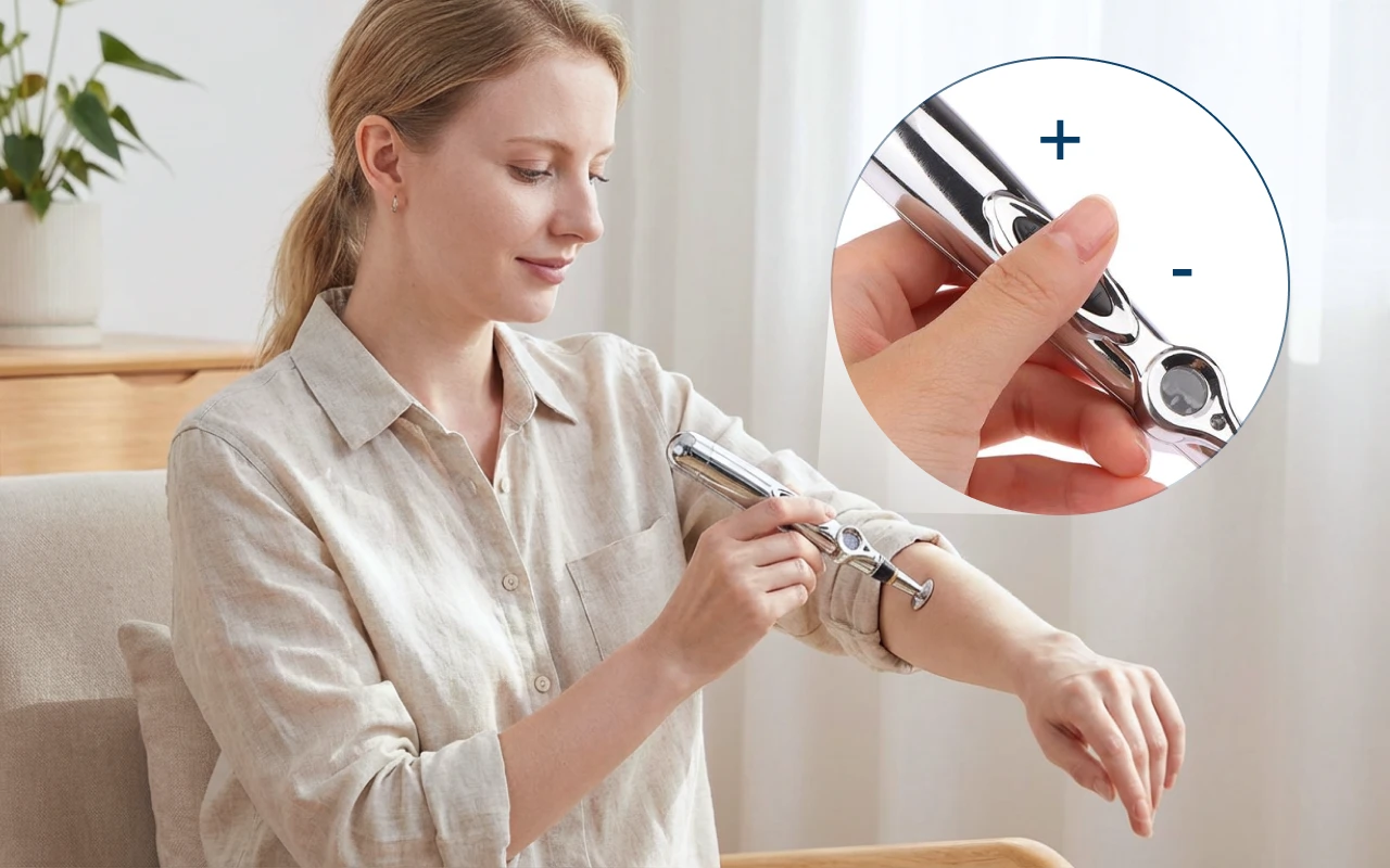 Ortorex akupunkturpenn passer naturlig i hånden, og gir jevn kontroll. Det hjelper enkelt å nå hvert punkt og gjør behandlingsprosessen komfortabel.