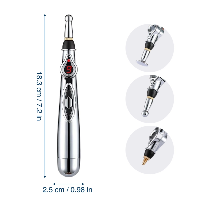 Dette gjør vår akupunkturpenn allsidig og svært effektiv. Hvert massasjehode er designet for å behandle et spesifikt område i kroppen din.