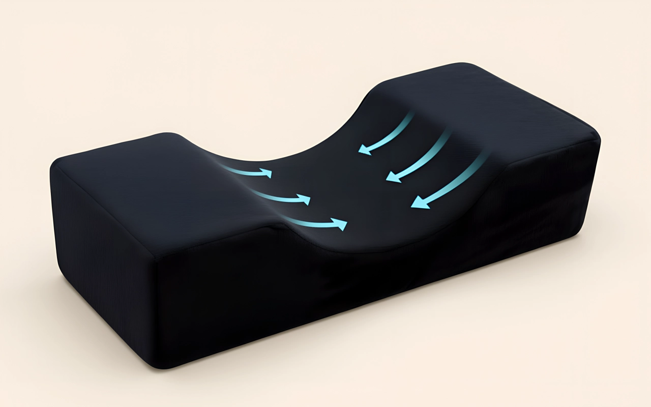 Unik konkav form følger den naturlige kurven på nakken din. Dette designet reduserer smerte og holder hodet i riktig posisjon.