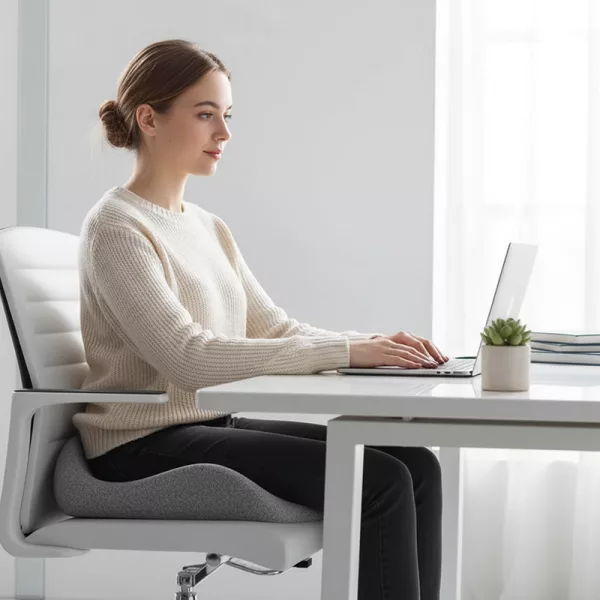 Veldig fornøyd med denne halebensputen! Hoftene mine er fornøyde, og jeg sitter rettere. Glir ikke, selv når jeg beveger meg mye ved pulten.
