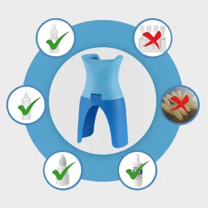 Ortorex dråpedispenser gjør øyebehandlinger raske og sølfrie. Det smarte designet hjelper deg å plassere flasken akkurat der du trenger den. Slutt på blunking, vanskeligheter eller bomskudd.