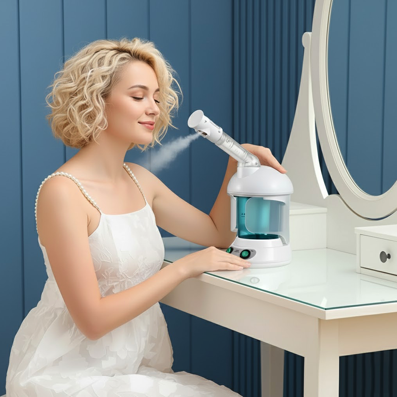 Tar nesten ingen tid å sette opp, og dampen er superfin—ikke for varm. Ansiktet mitt ser glattere og mye renere ut.