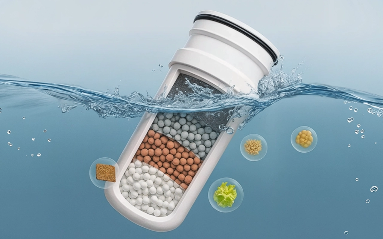 Et keramisk element fanger opp rust og sediment på mikroskopisk nivå. Det sikrer at bare klart vann renner gjennom ved hver bruk.