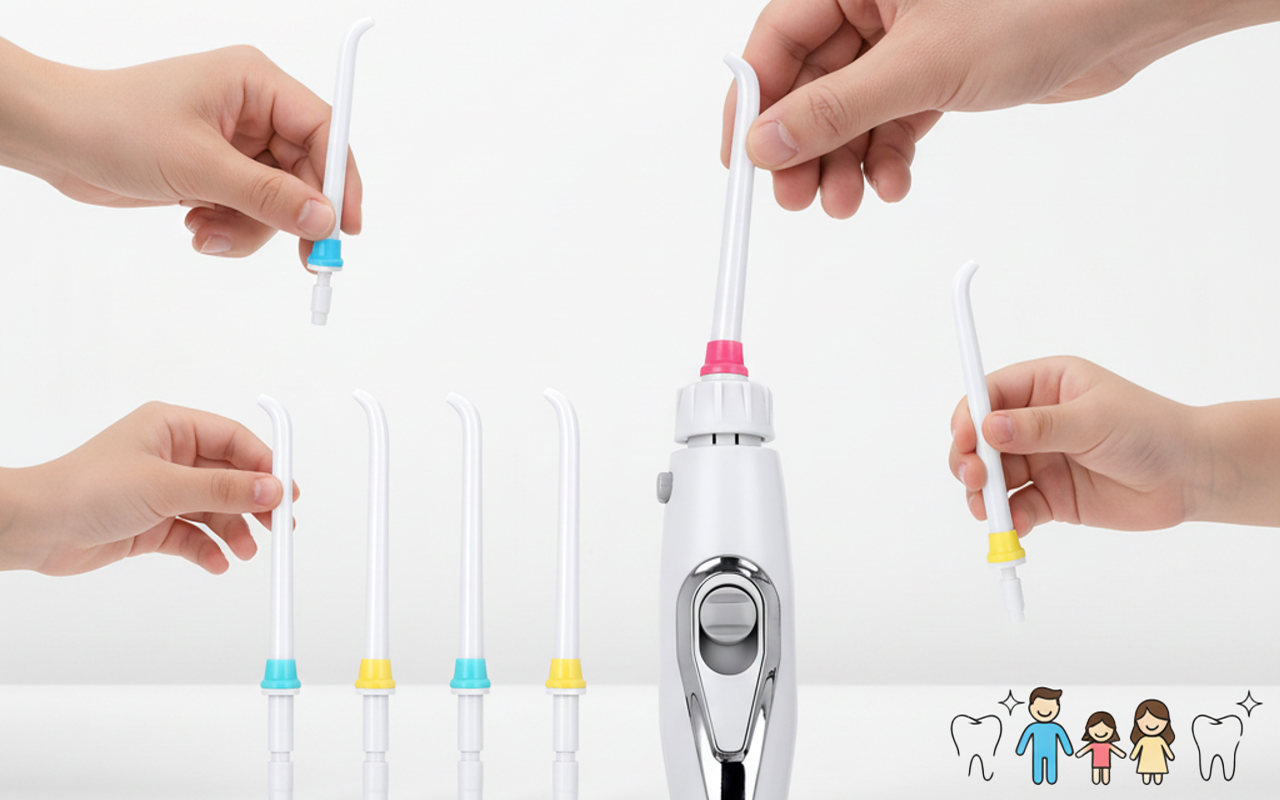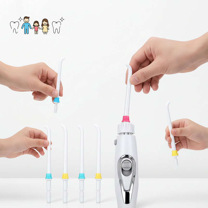 Hvert munnstykke har en egen farge for familiemedlemmer. Alle får en ren og trygg opplevelse hver gang.