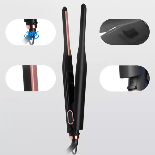 De smale kantene hjelper til med å fikse luggen og kan også brukes til å krølle tuppene. Veldig fornøyd siden den ikke trekker eller lugger håret mitt.