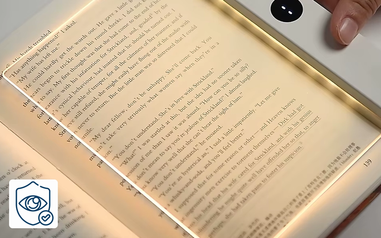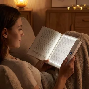 Nattlesing føles lett og skånsom for øynene med Ortorex boklys flatpanel. Det dekker mykt hver side og gjør ordene tydelige uten skarpt gjenskinn. Fleksible innstillinger gir rolig studietid eller godnatthistorier. Den lette konstruksjonen gjør at du kan flytte den dit du vil.
